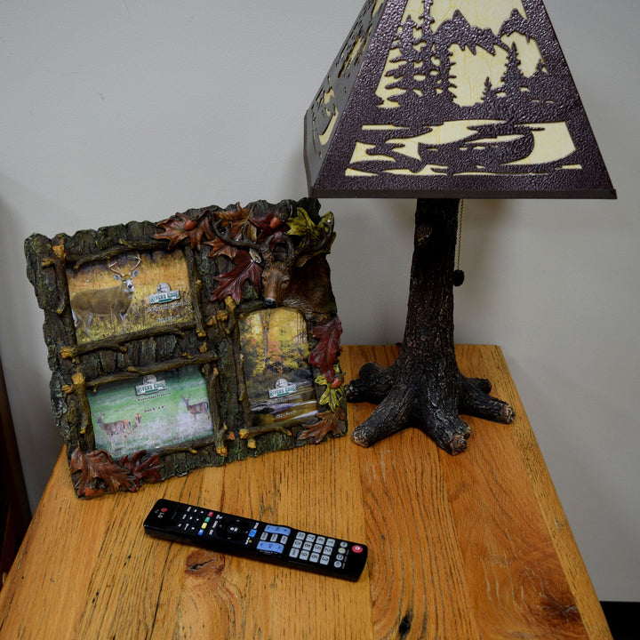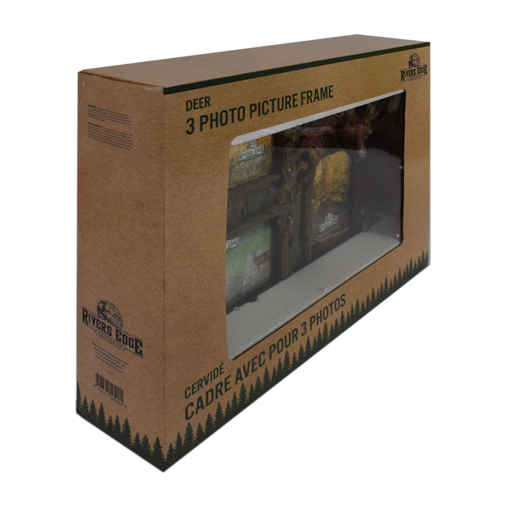 This deer picture frame from River's Edge Products showcase a whitetail deer sneaking through the forest. The glass inserts for the picture frames are included. The border of each picture space is bordered by broken resin sticks. Makes for a perfect gift idea for any outdoor enthusiast.