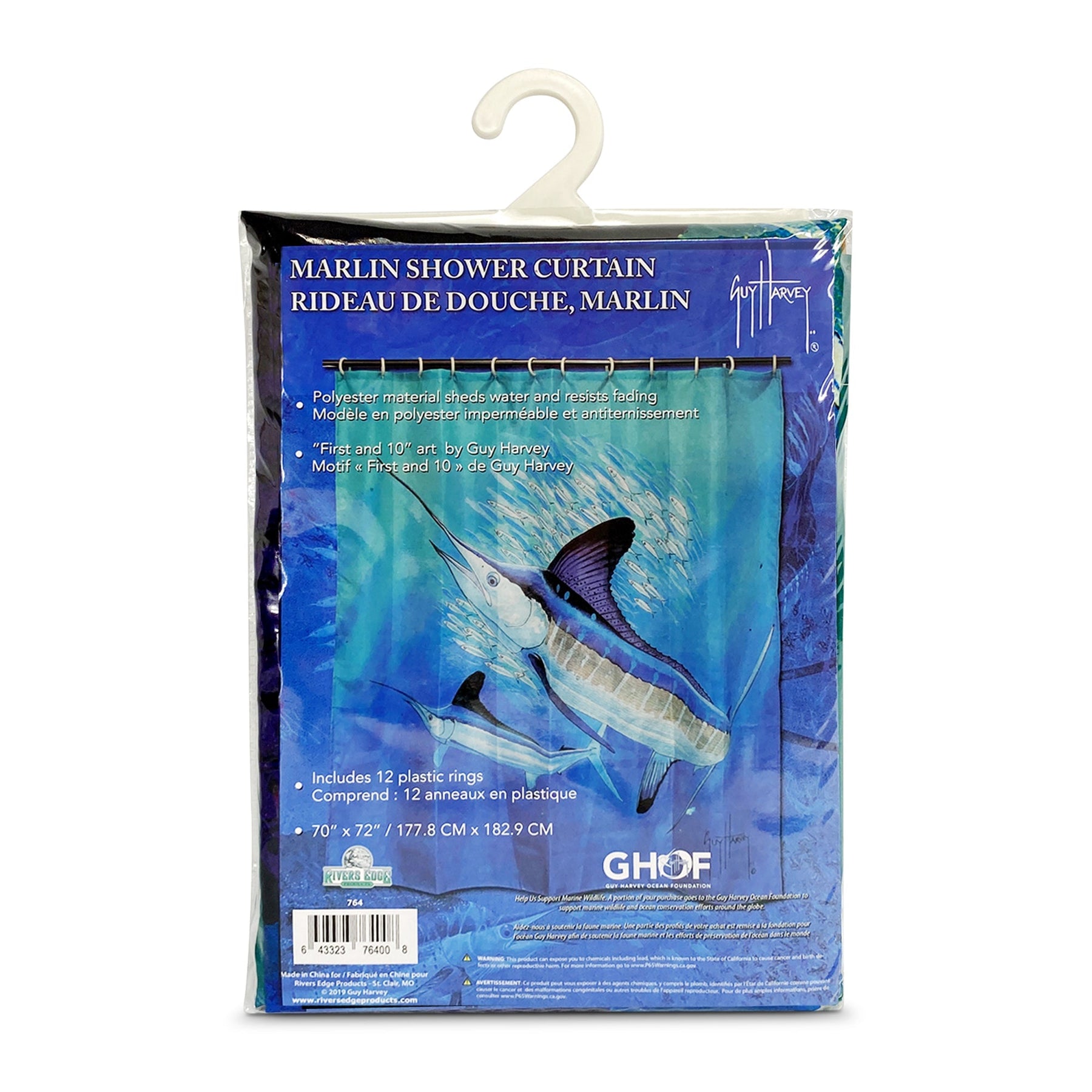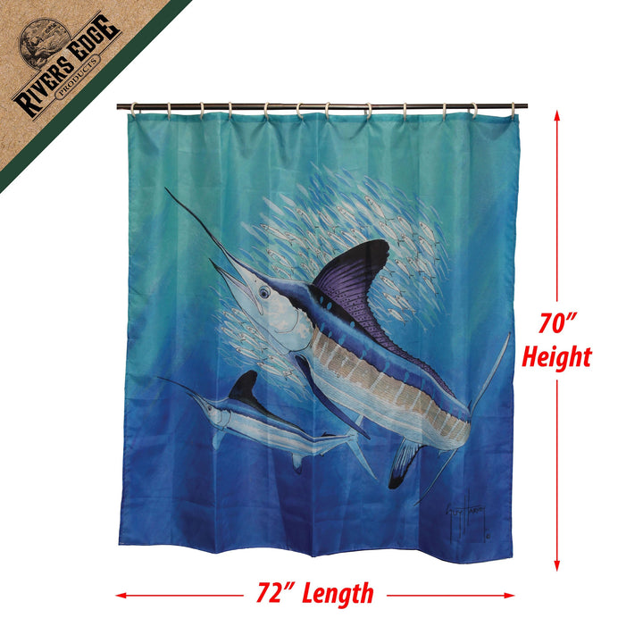 The Rivers Edge Products Guy Harvey shower curtain is the perfect touch for any outdoor enthusiast's bathroom.