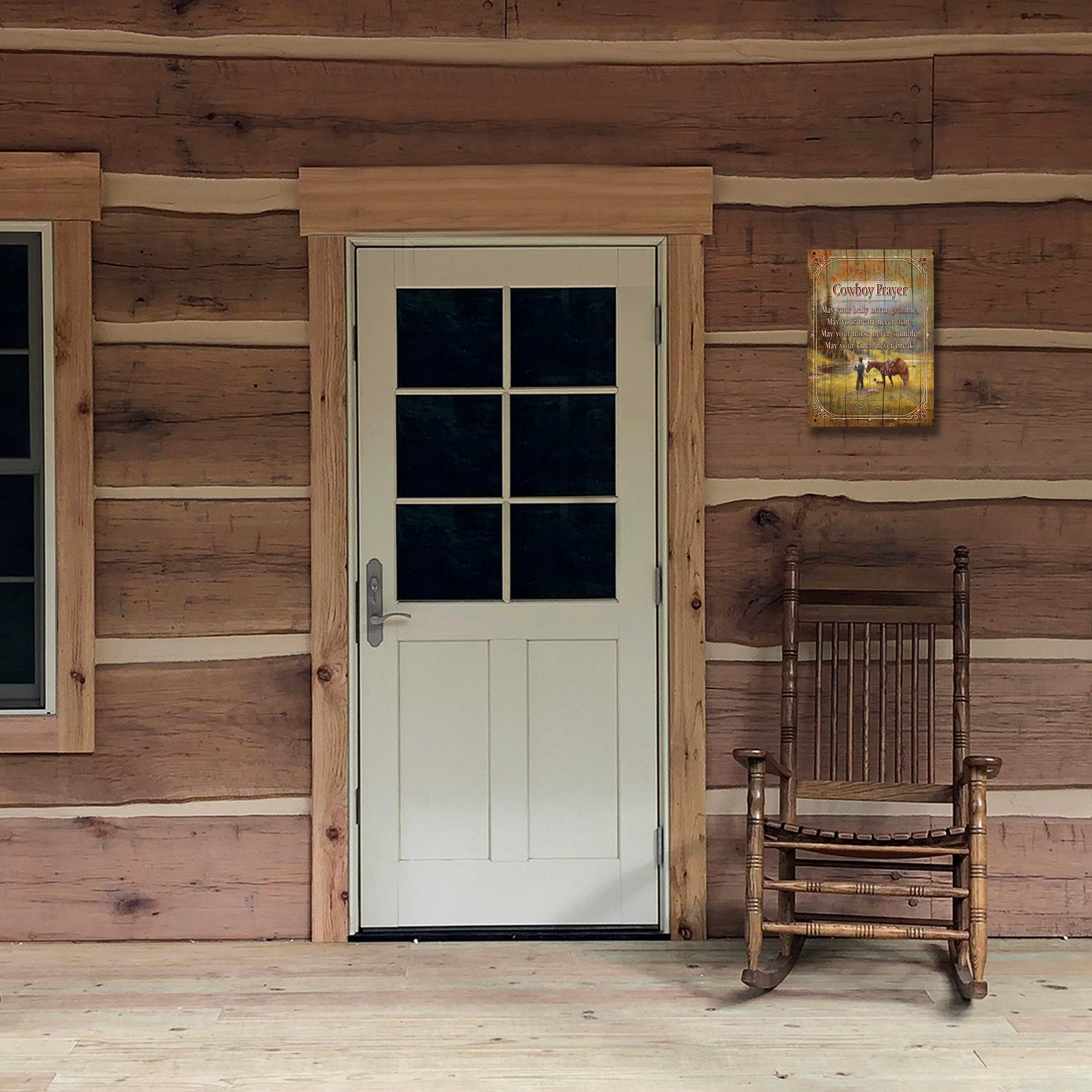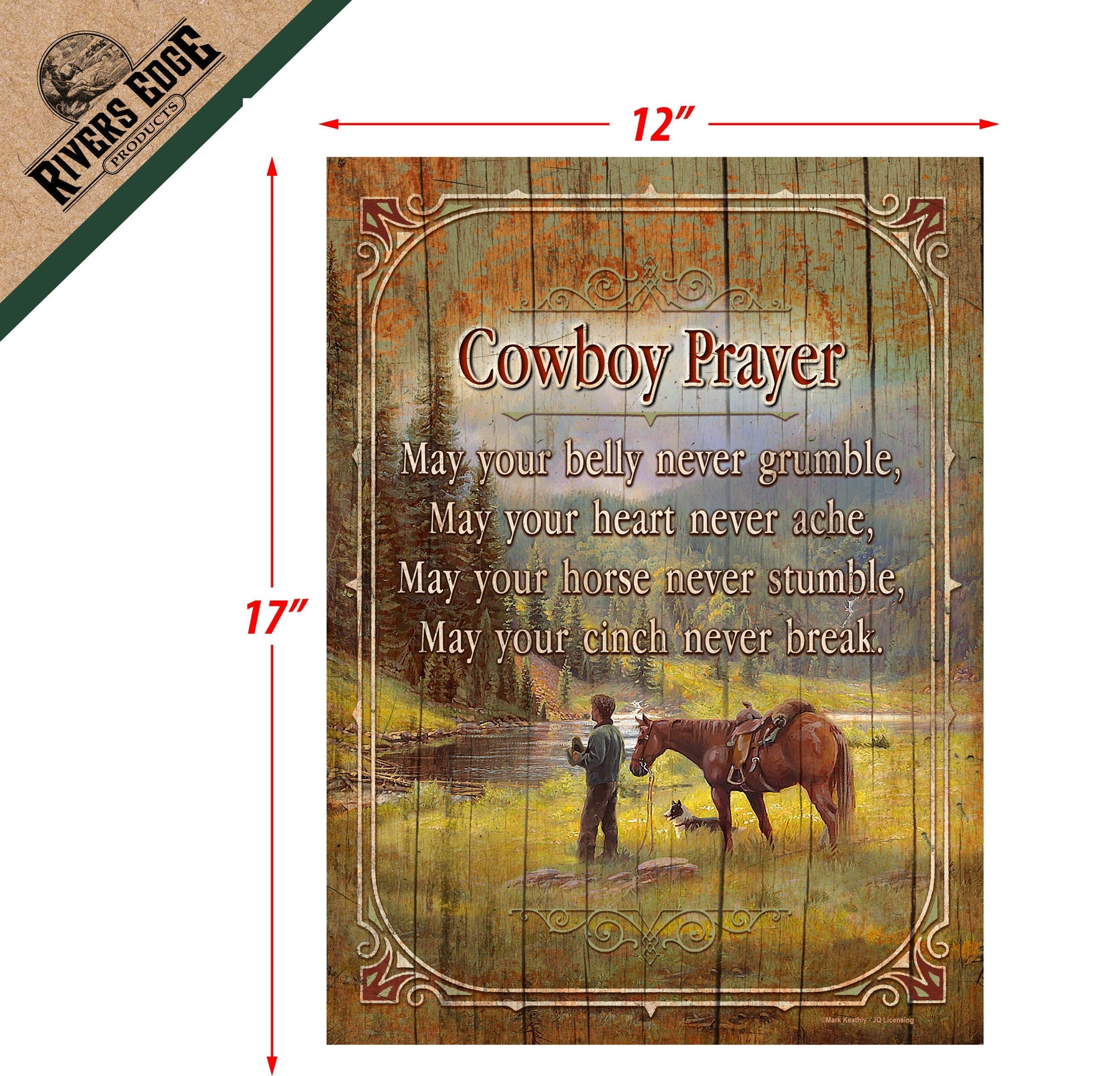 These wood signs from River's Edge Products will look great in any cabin, bar, man cave or living room. Colorful licensed art by renowned artists with the "Cowboy Prayer" on the sign.