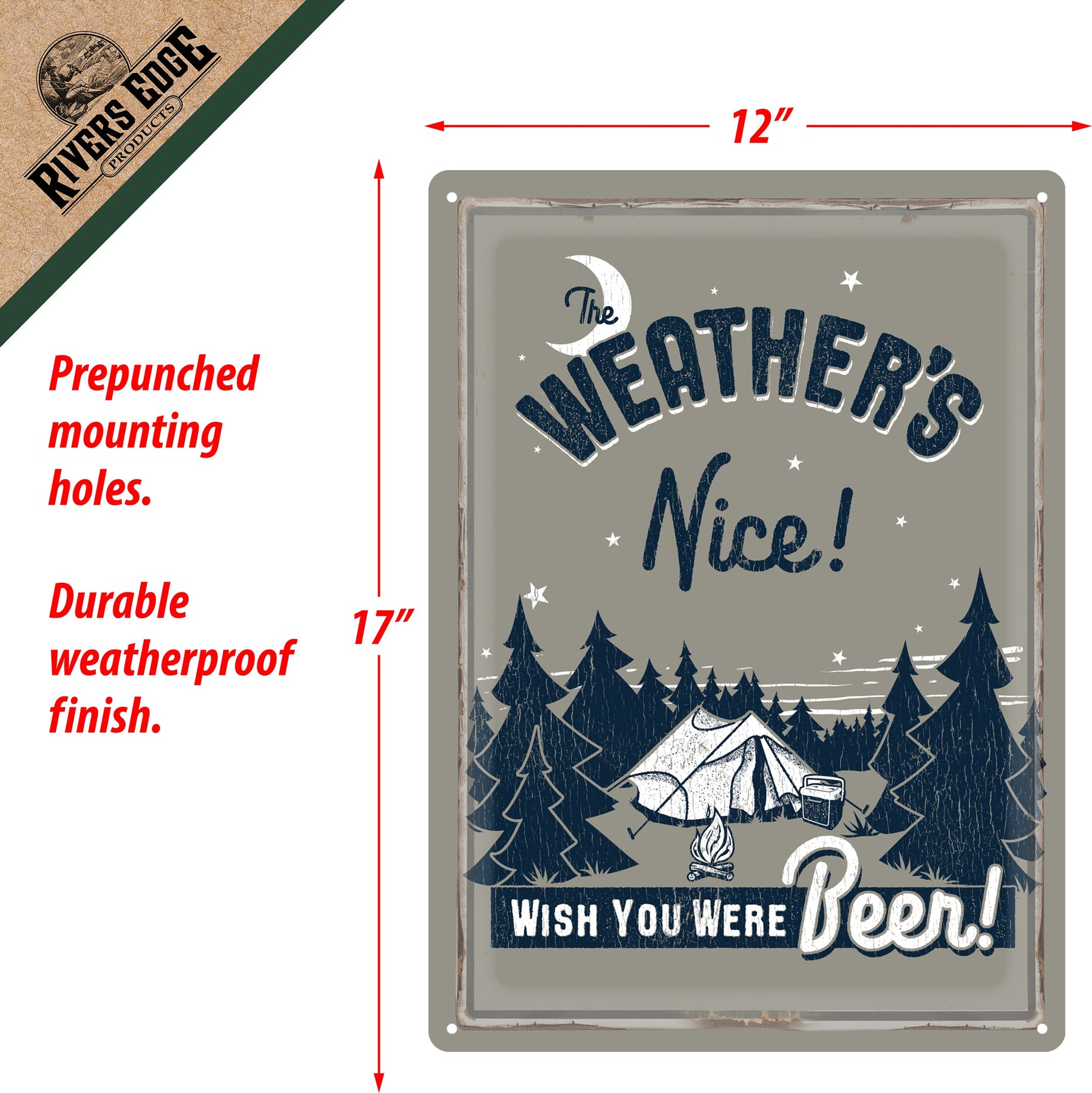 This metal tin sign from Rivers Edge Products is ideal wall decor for outdoor enthusiasts with a sense of humor. Customize your garage, home bar, or living space with this funny tin sign.