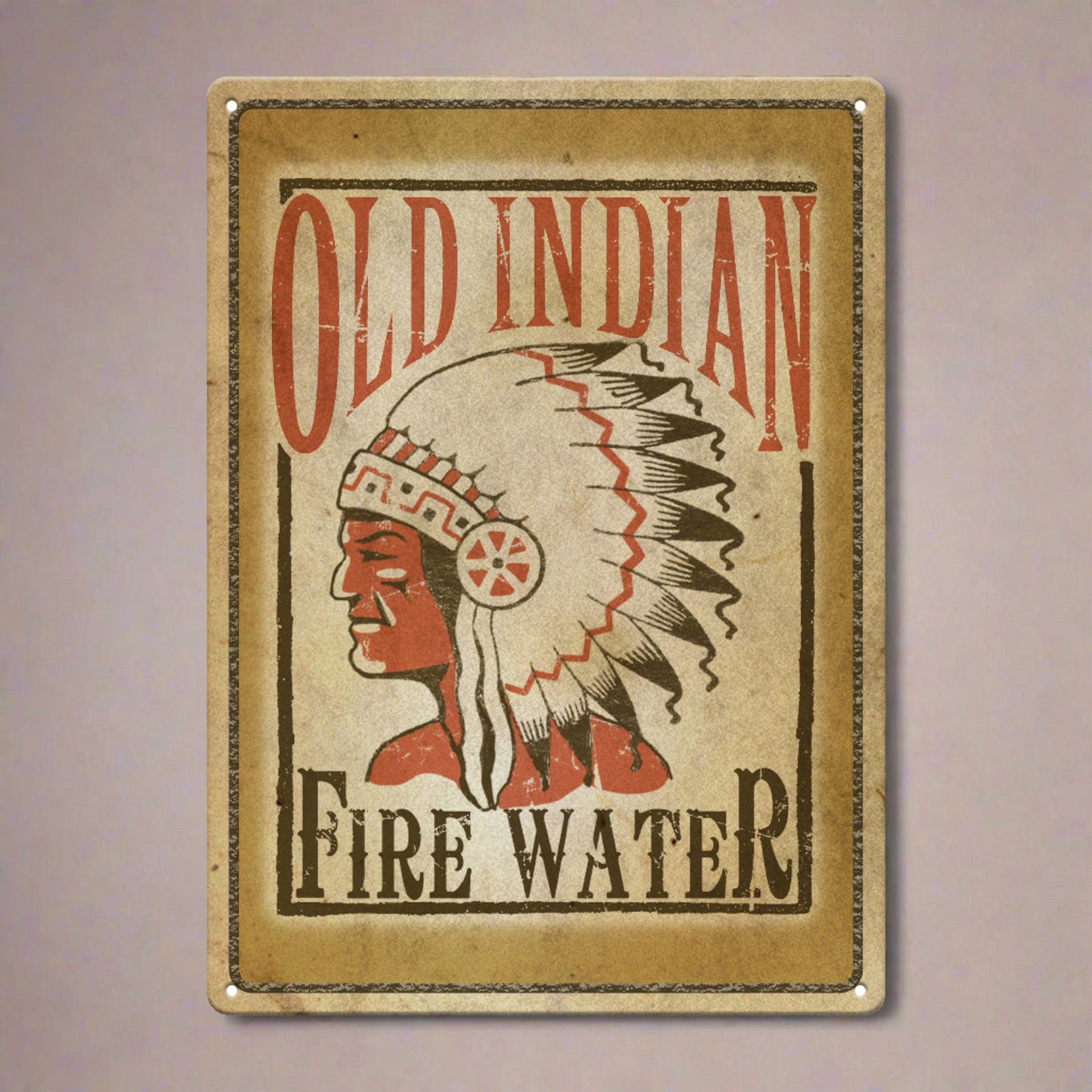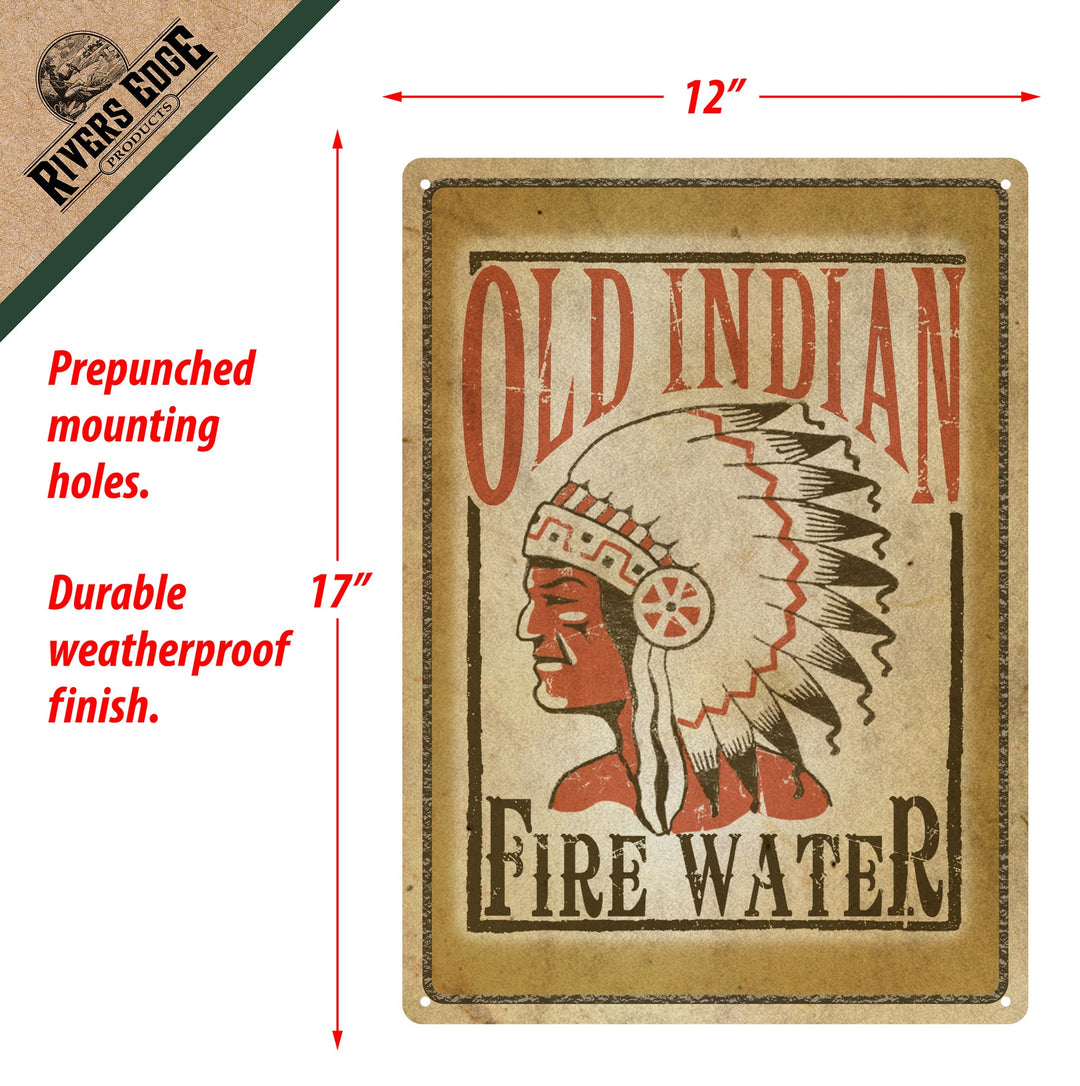 Tin Sign 12in x 17in-Old Indian Fire Water