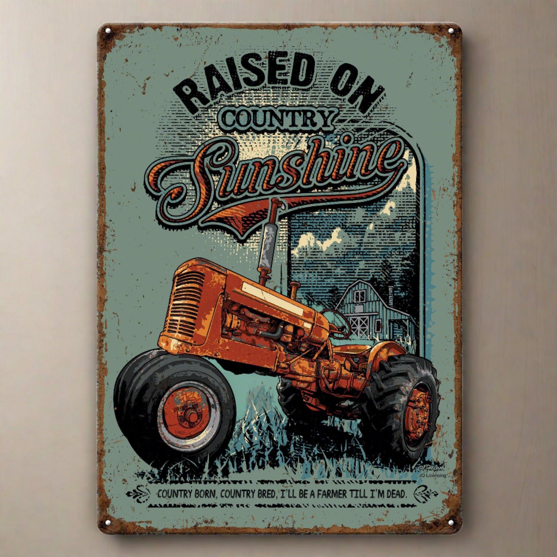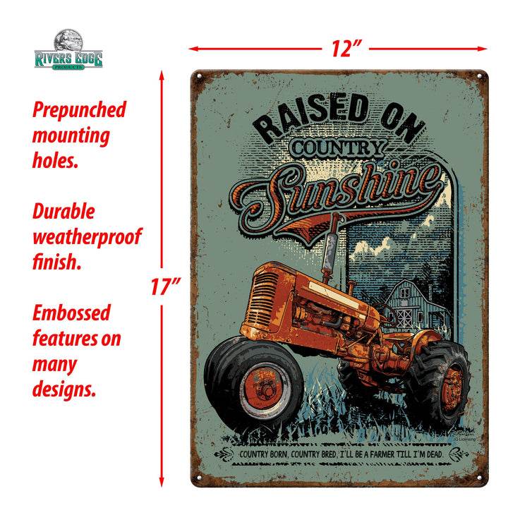 Show your farm-raised pride! This metal tin sign from Rivers Edge Products is ideal wall decor for outdoor enthusiasts. Customize your garage, home bar, or living space with this tin sign.
