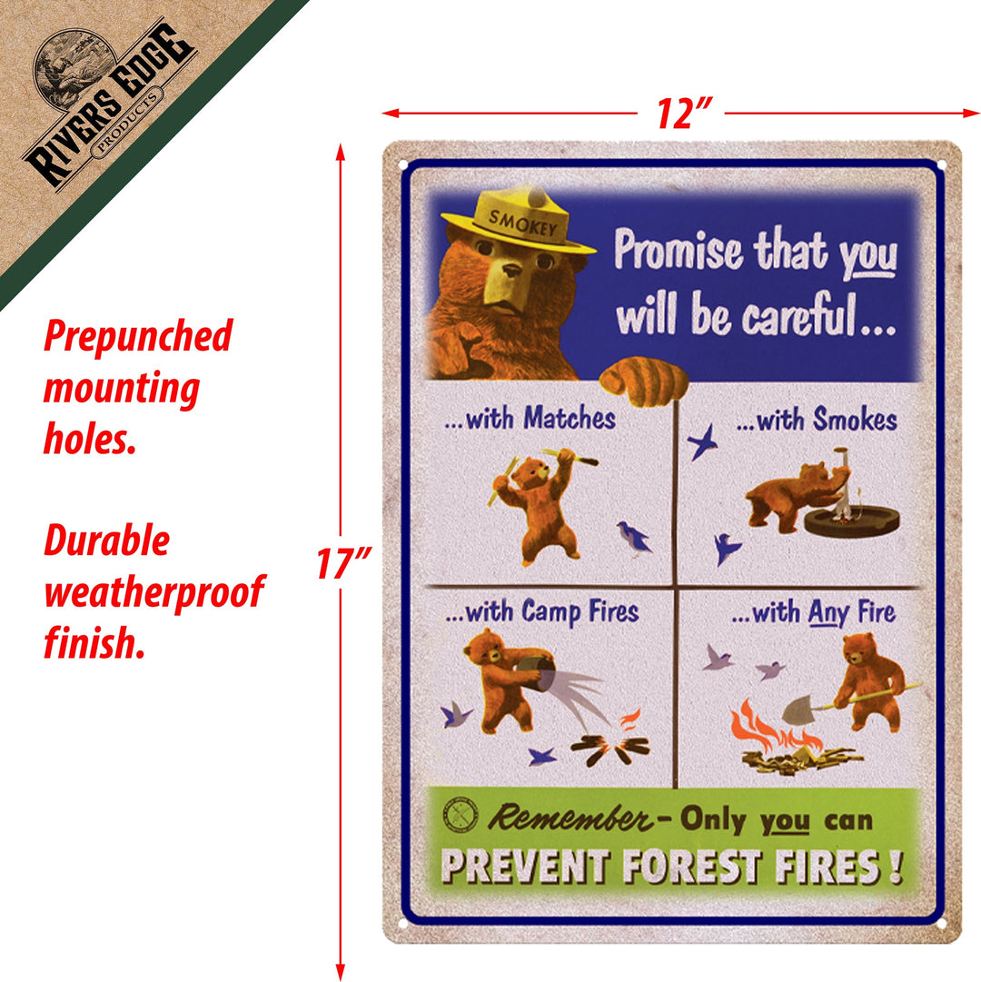 This metal tin sign from Rivers Edge Products is ideal wall decor for outdoor enthusiasts with a love of vintage Smokey Bear. Customize your garage, home bar, or living space with this classic tin sign.