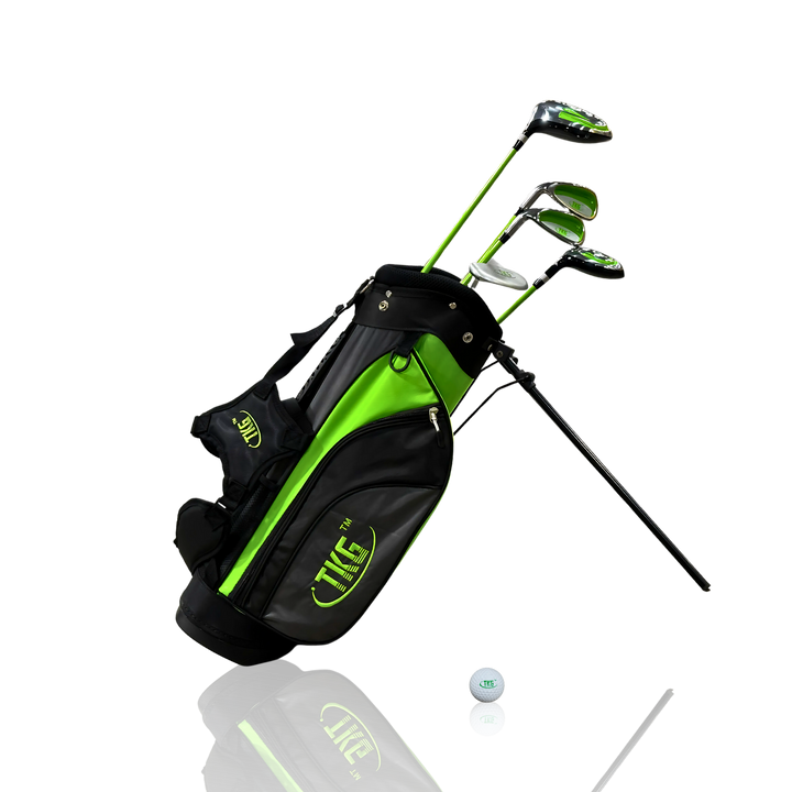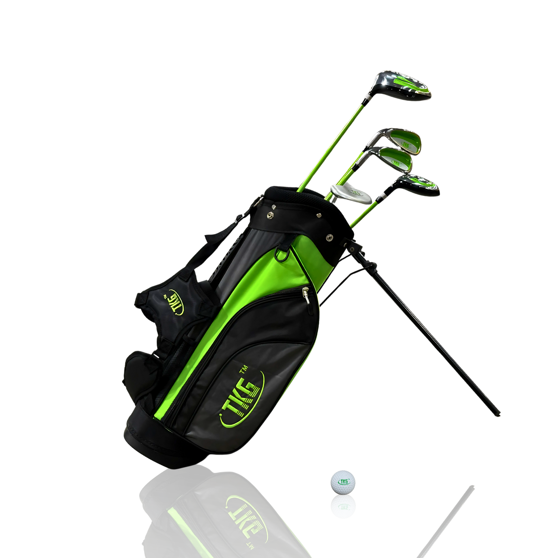 Elevate your junior golfer's passion and drive with TKG's complete golf set. Designed for everything they need for on-course success, the TKG Golf set is the only youth starter set that comes with all the clubs, bag, and accessories that your child needs for the course. Sets are available for 3 different age groups and right or left hand options. The Green Junior Golf Set is designed for ages 5 to 8.