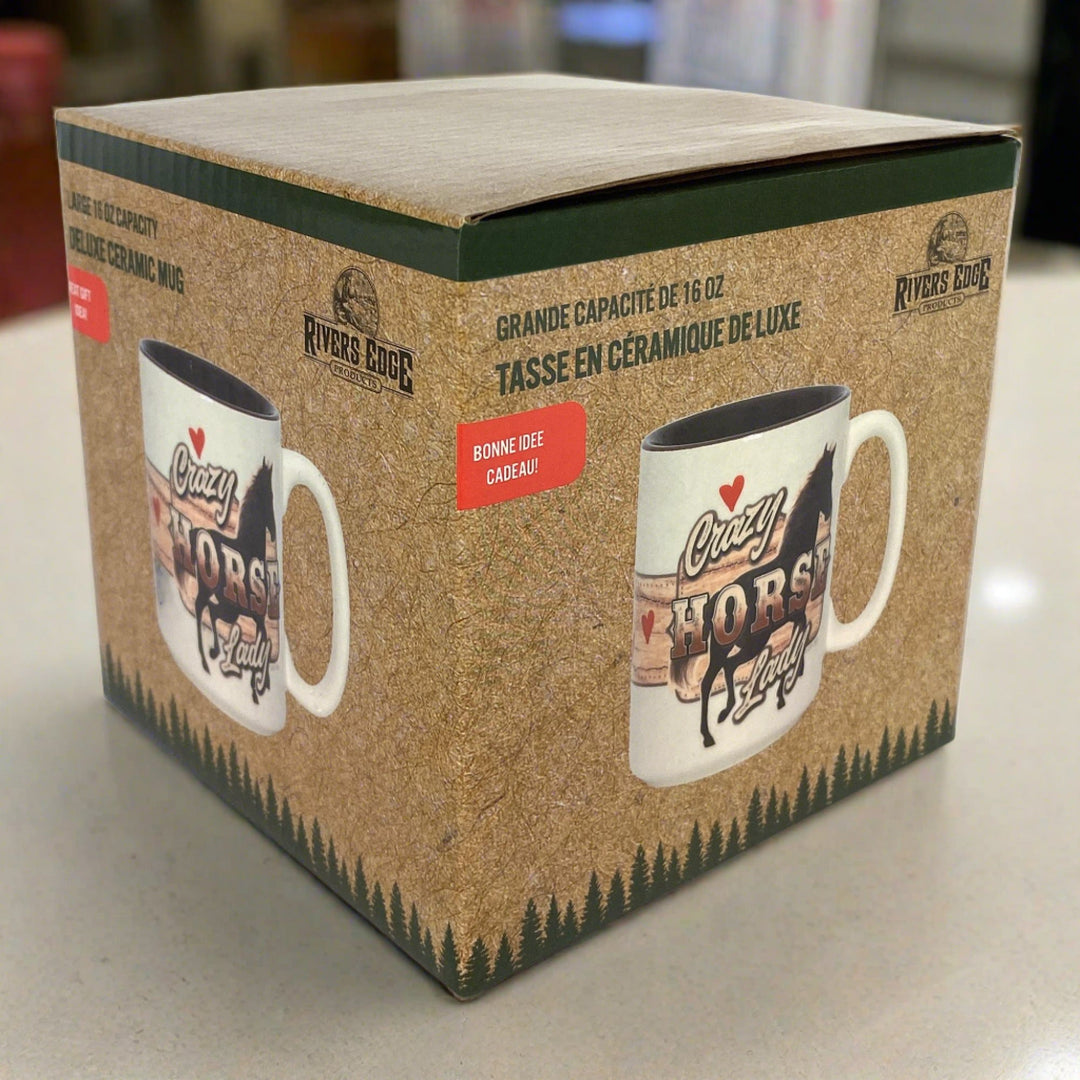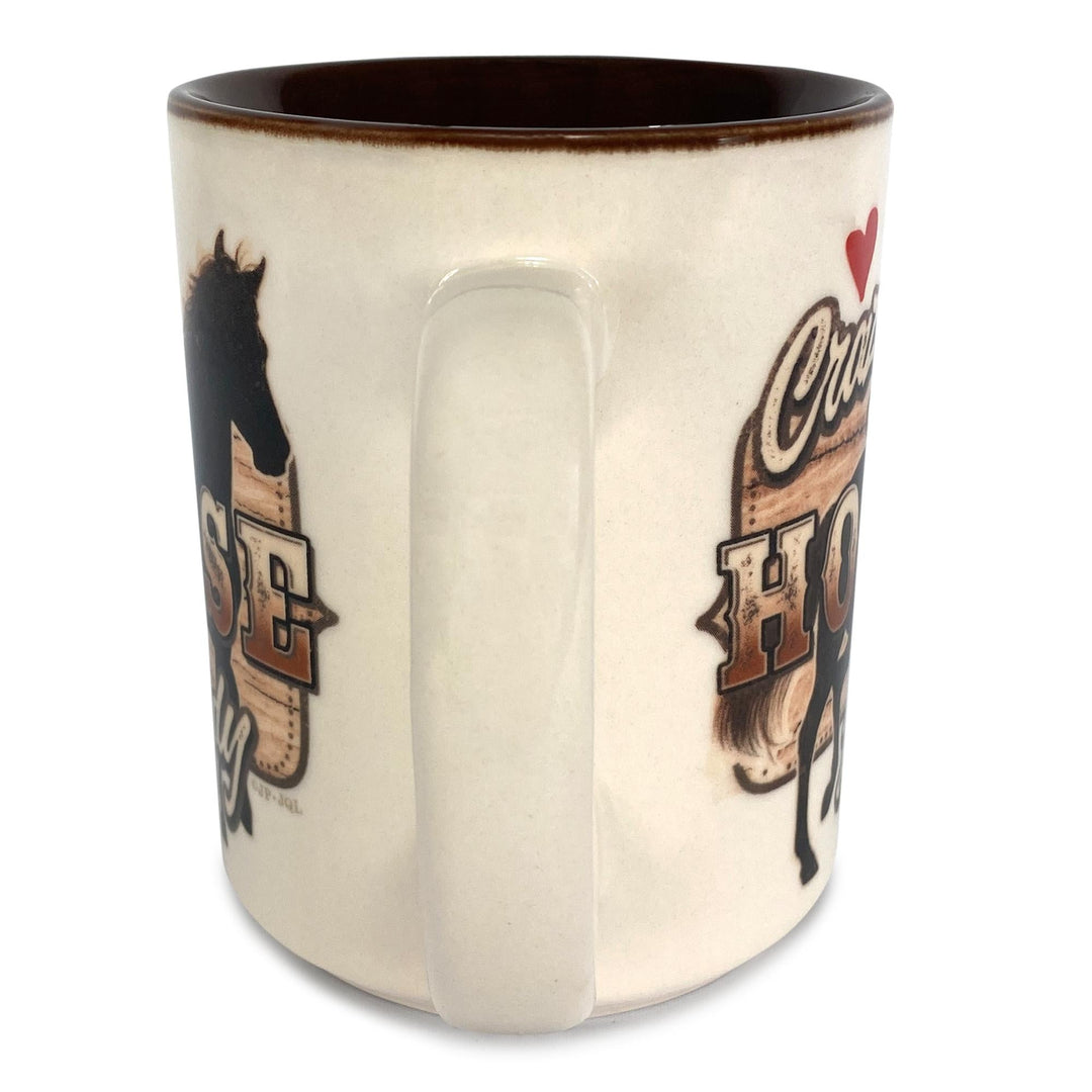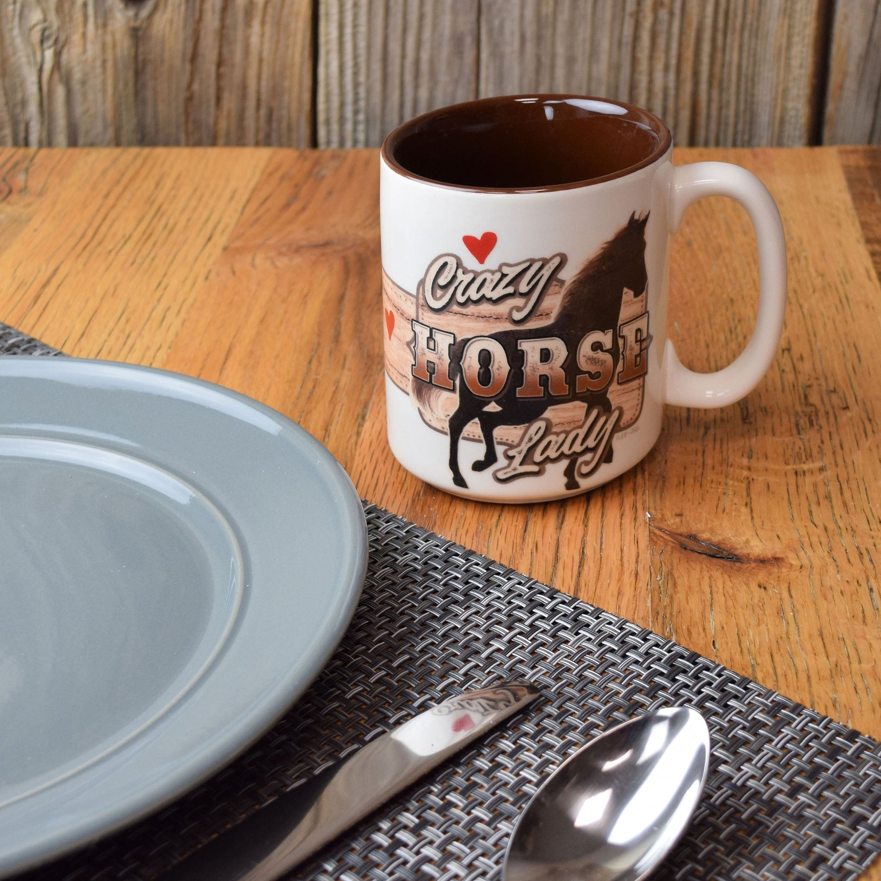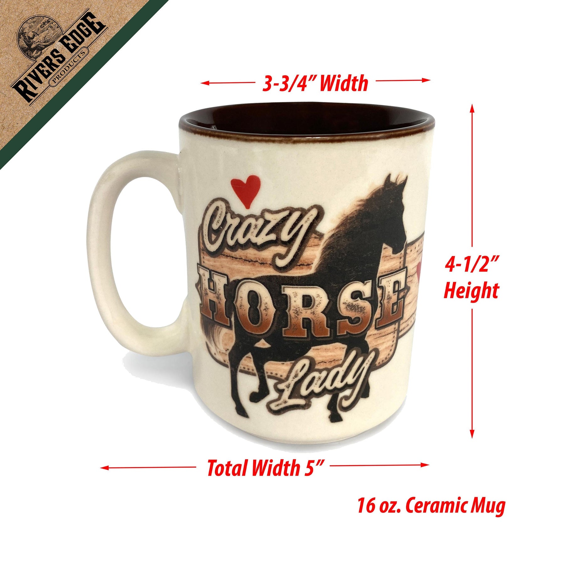This horse scene ceramic mug by River's Edge Products is ideal for any horse enthusiast. Drink your morning coffee, tea, hot chocolate, or other beverage out of this highly detailed mug.