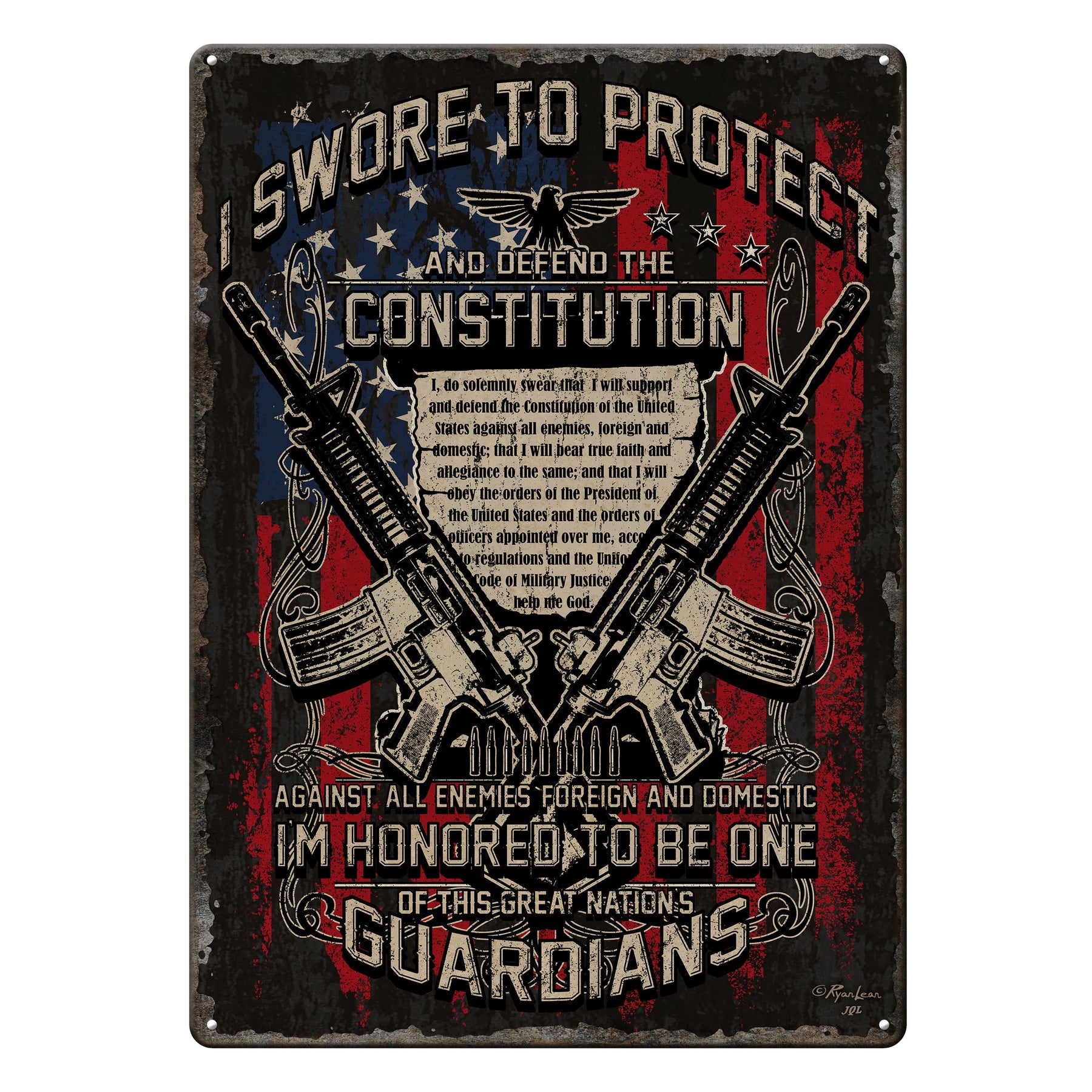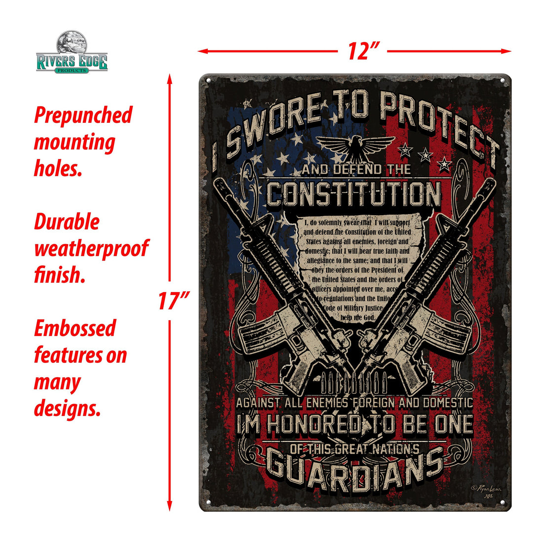 This metal tin sign from Rivers Edge Products is ideal wall decor for patriots and American defenders. Customize your garage, home bar, or living space with this patriotic tin sign.