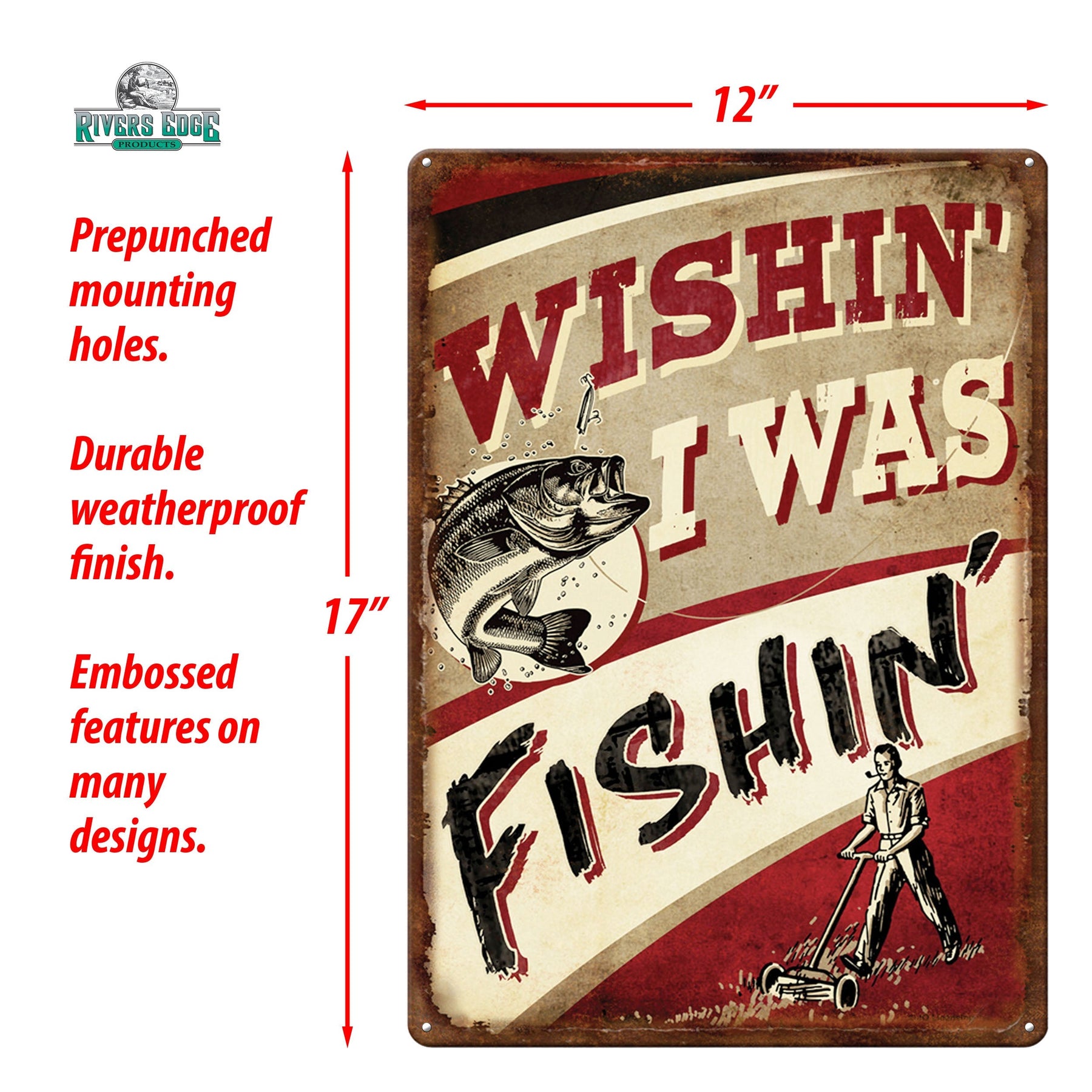 Here's to hoping fishing is more than a daydream. This metal tin sign from Rivers Edge Products is ideal wall decor for outdoor enthusiasts with a sense of humor. Customize your garage, home bar, or living space with this funny tin sign.