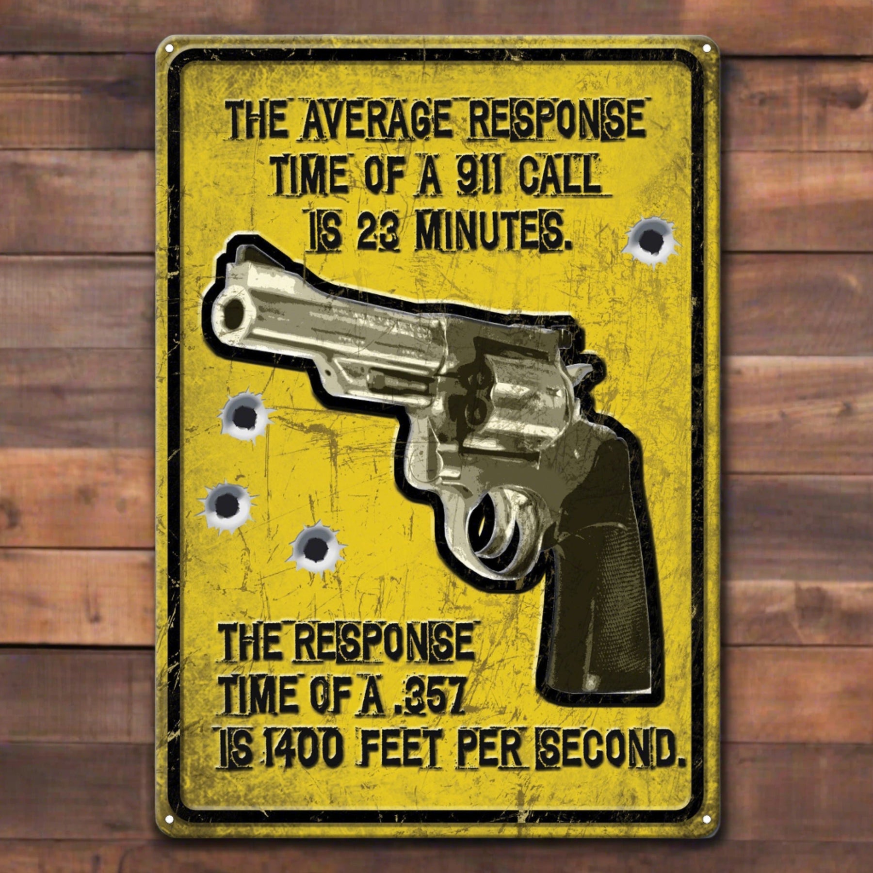 This metal tin sign from Rivers Edge Products is ideal wall decor for Second Amendment supporters. Customize your garage, home bar, or living space with this patriotic tin sign.