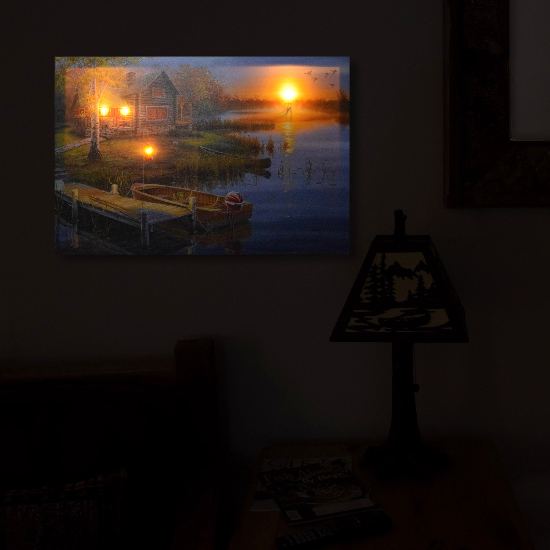 This LED artwork from River's Edge Products is titled "Autumn At The Lake," by Darrell Bush - MHS Licensing. Makes for a perfect gift for any outdoor enthusiast or a great addition to any outdoor themed home decor.