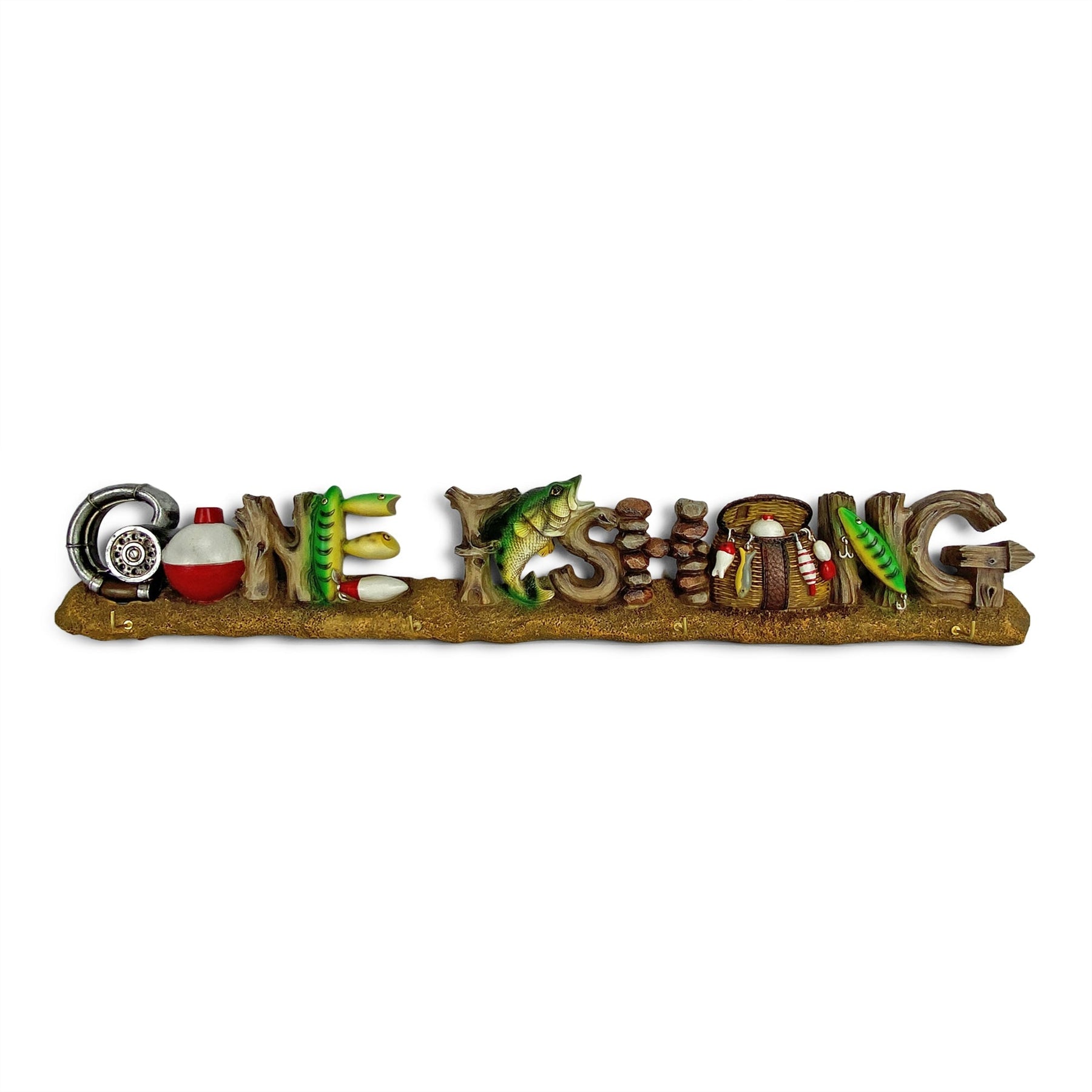 The gone fishing key rack from Rivers Edge Products is of poly resin construction. The letters in "Gone Fishing" are represented by different items that a fisherman might have with them. Makes for a great gift idea for any angler or outdoor enthusiast.
