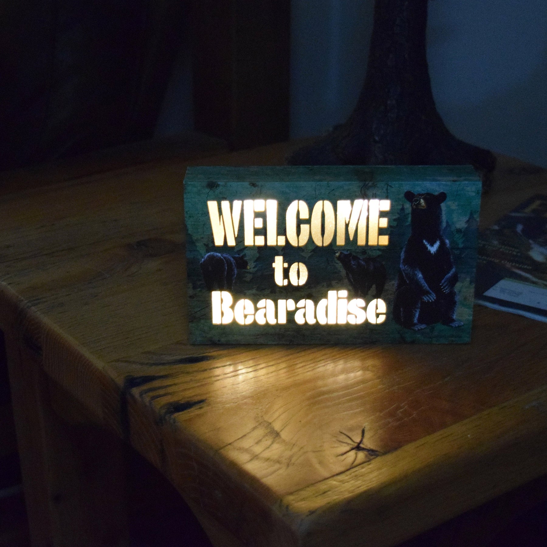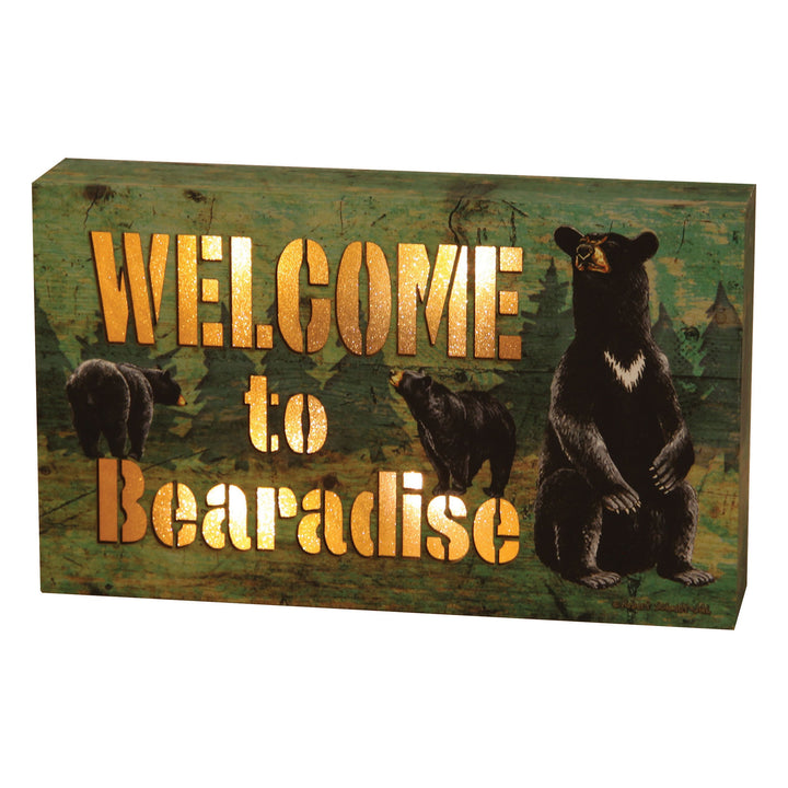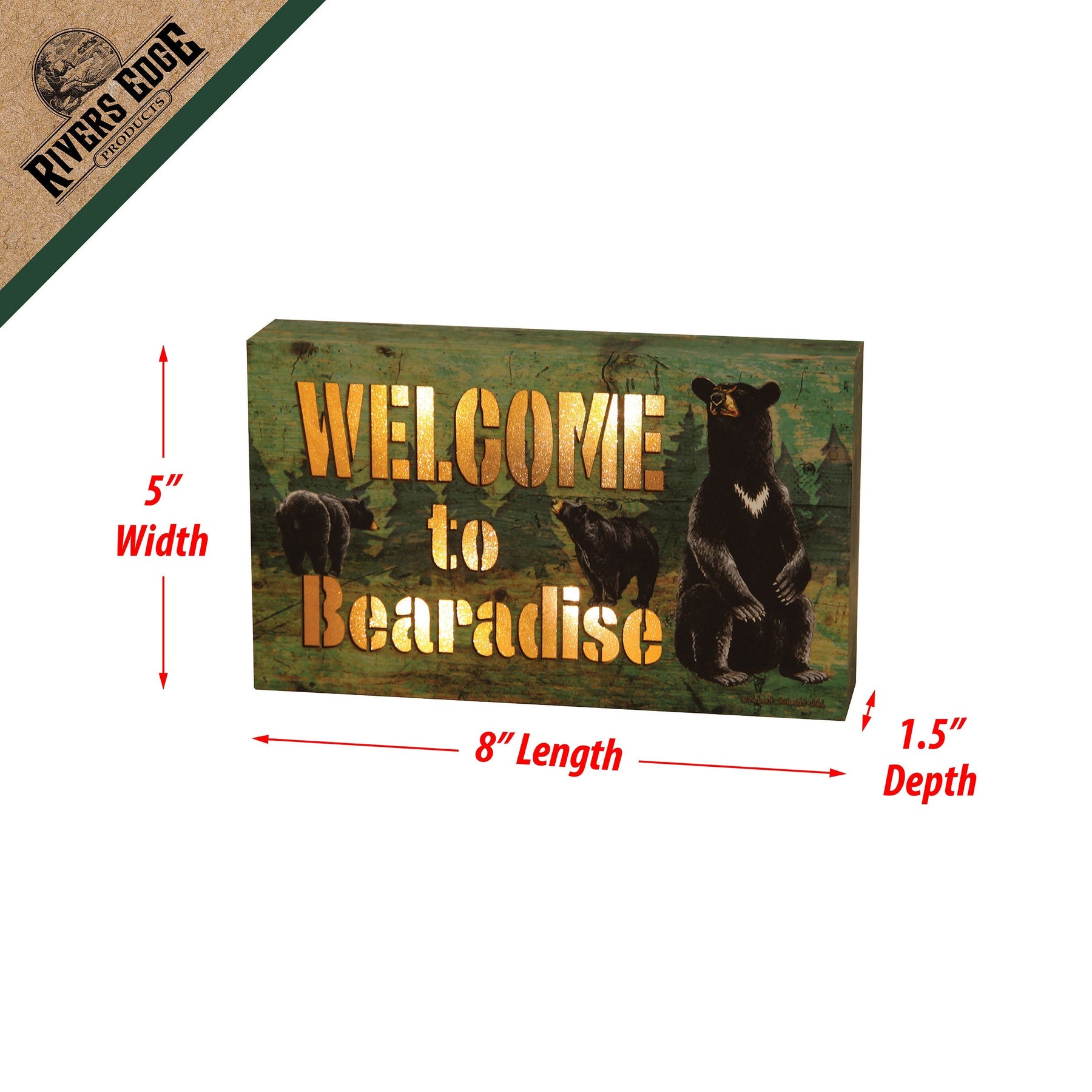 The bearadise LED box from River's Edge Products feature great art and messages that any outdoor enthusiast can identify with. The artwork showcases three black bears in the woods with the lighted message "Welcome to Bearadise." Makes for a perfect gift idea for any outdoor enthusiast.