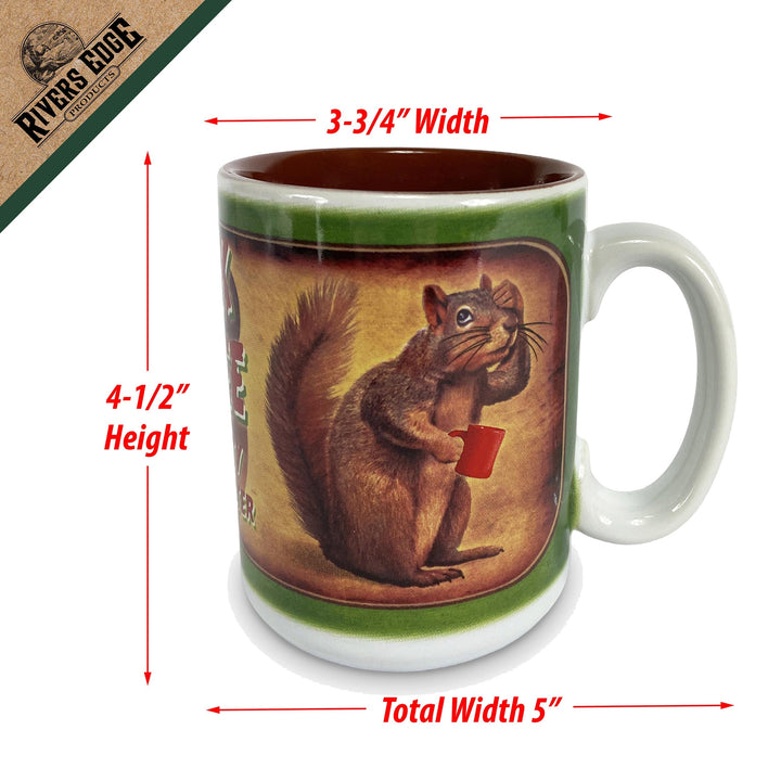 This squirrel ceramic mug by River's Edge Products is ideal for any outdoor enthusiast. Drink your morning coffee, tea, hot chocolate, or other beverage out of this highly detailed mug.